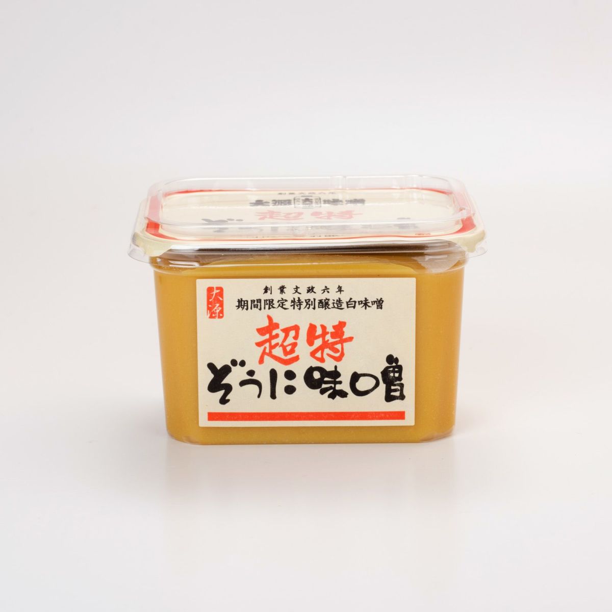 他の画像を見る 30割もの麹歩合で造り上げた究極の白味噌です(12月限定) 超特ぞうに味噌(甘口) 500gカップ入り 予約商品 こちらは予約商品です 予約販売価格 ¥ 2,592 税込 予約受付期間 2025/11/01 0:00 〜 2025/11/25 0:00 詳細を見る お気に入りに登録する